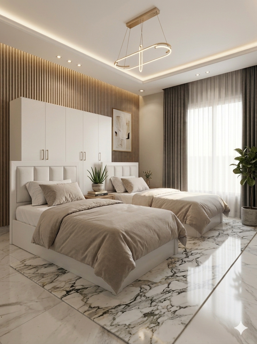 2 سرير أو 3 سرير + دولاب 6 باب أو 8 باب + كومودينو + تسريحة + كرسي تسريحة