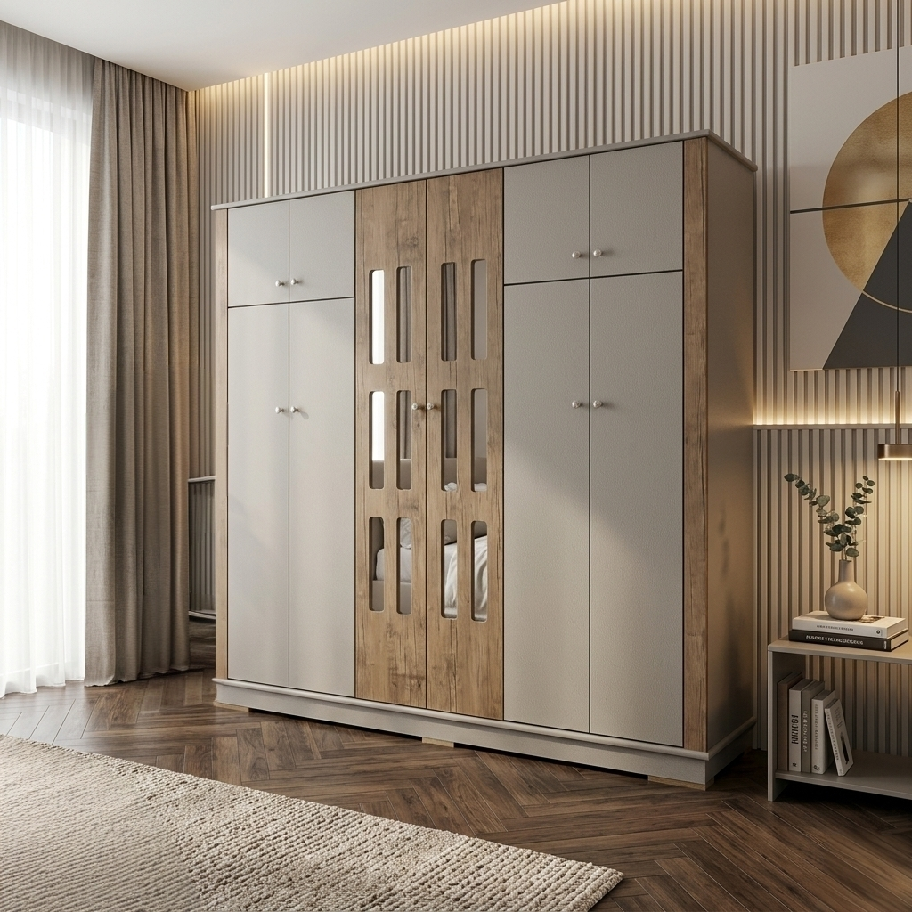 دولاب 6 باب أو 8 باب حسب المساحة والتصميم.