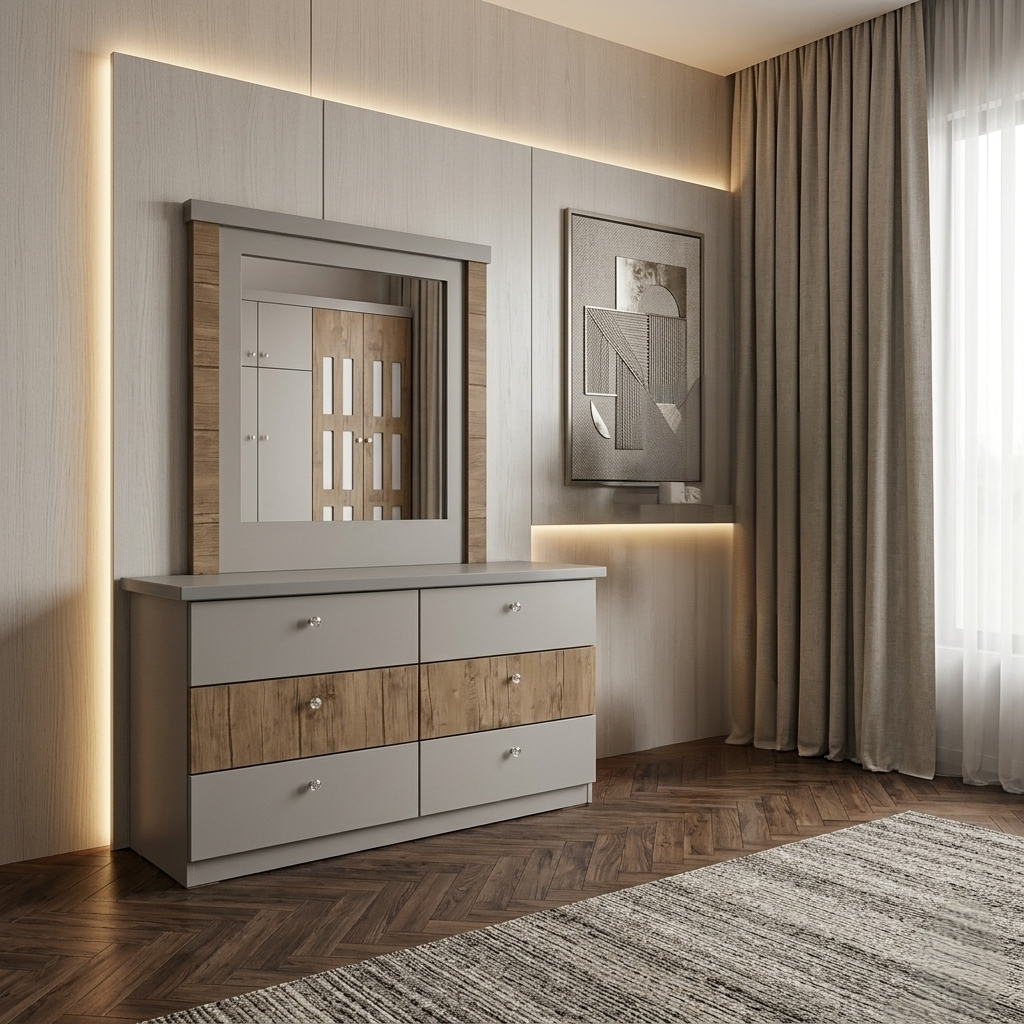 2 سرير أو 3 سرير + دولاب 6 باب أو 8 باب + كومودينو + تسريحة + كرسي تسريحة