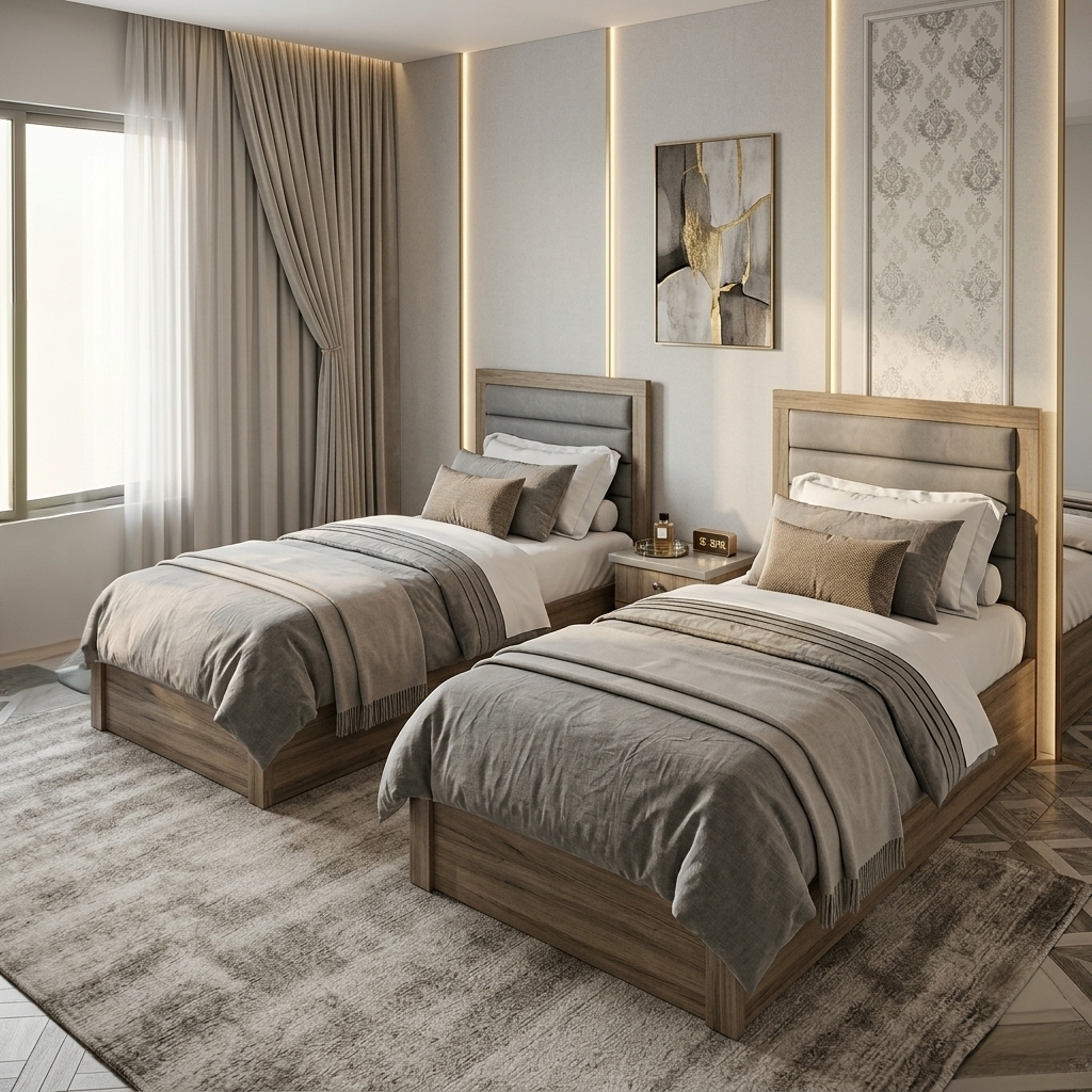 المقاس القياسي لكل سرير: 100 × 200 سم.