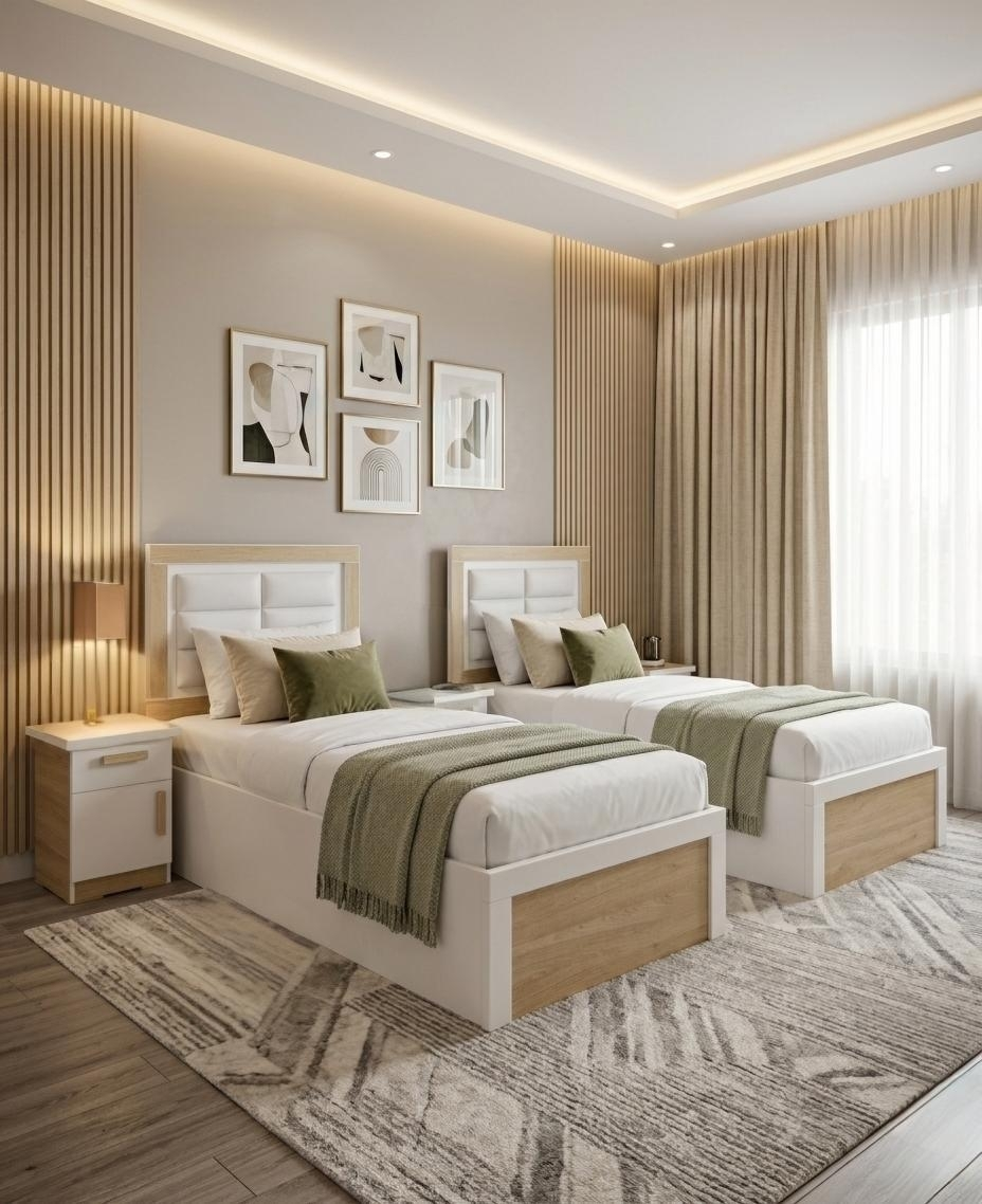 المقاس القياسي لكل سرير: 100 × 200 سم.
